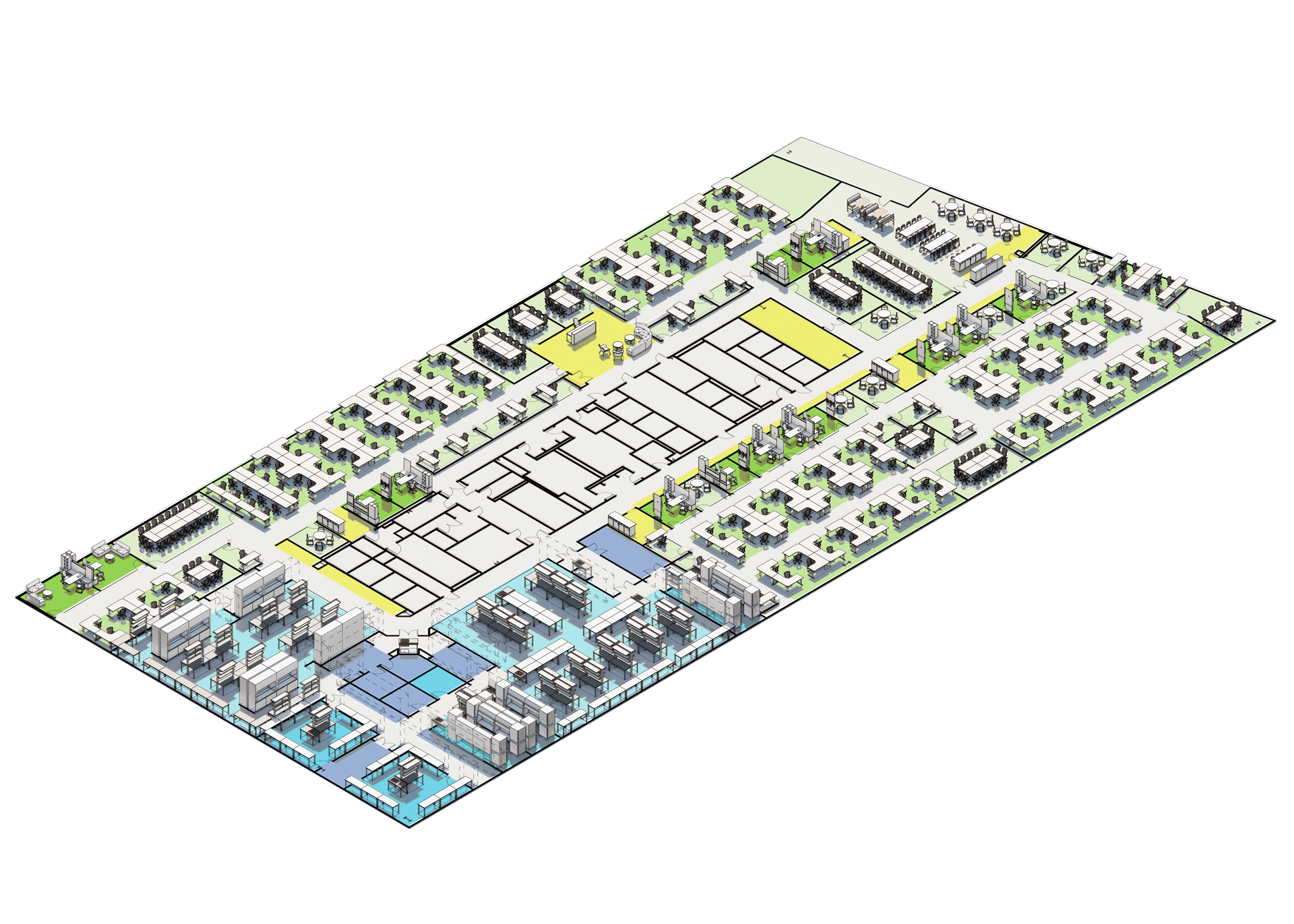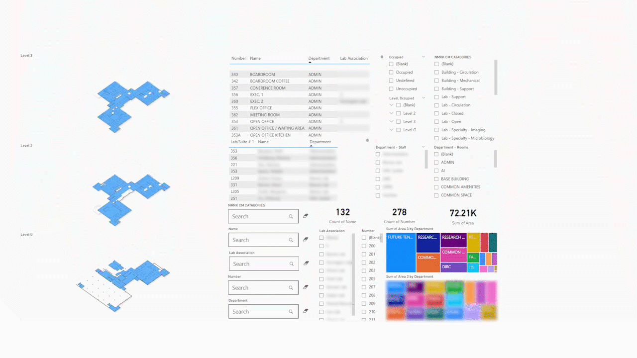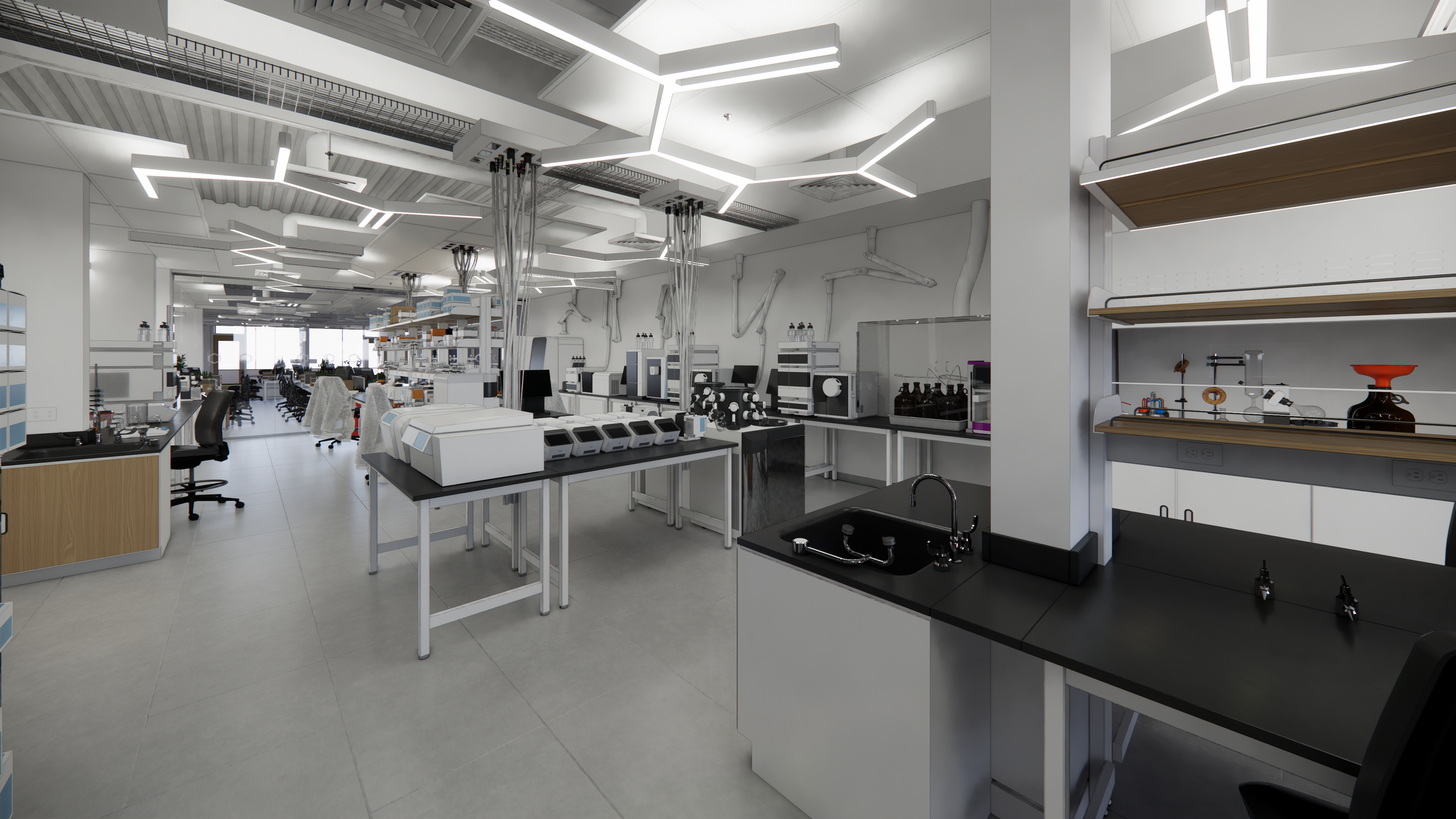 Digital Modeling – development of a 3D building information model to map laboratory equipment in a virtual twin of the spaces under consideration. This framework facilitates the physical planning of laboratory spaces and further refinement of the program. It is also a tool to visualize and build consensus around enabling work required to support the process flows specific to the organization’s needs. This aids in confirming overall space needs to accommodate laboratory equipment as facilitated by a laboratory equipment matrix.